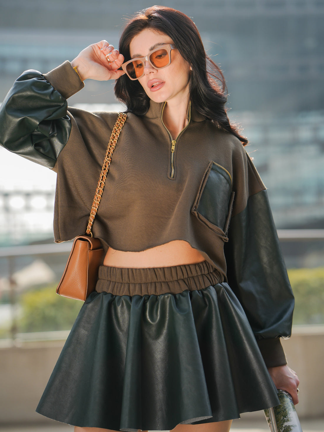 • Faux leather skirt.• High waist skirt elasticated with fabric.Fabric: Fleece: 52% cotton & 48%...