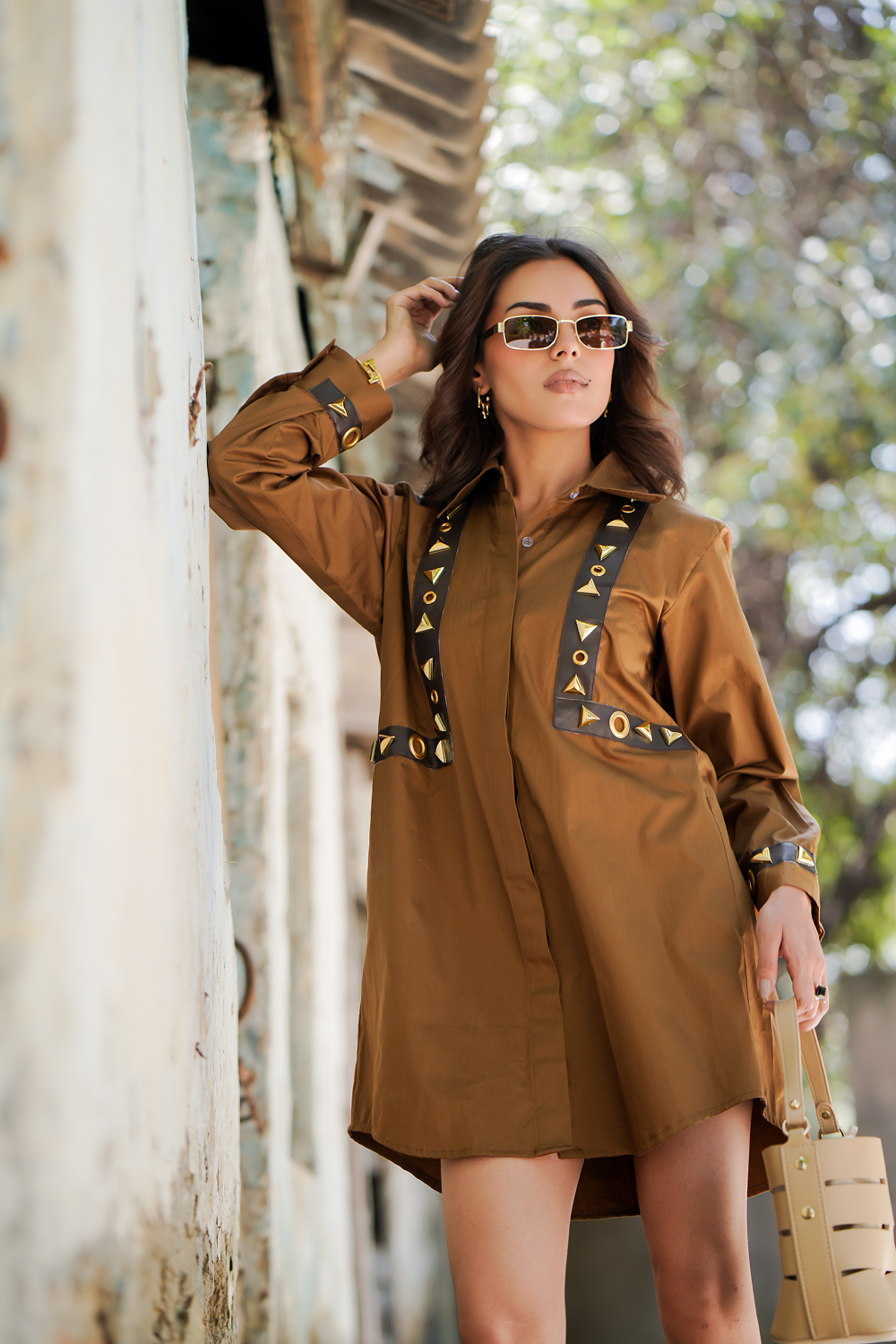Comfort fit shirt. Full buttoned down. Embellished detailing on front. Full sleeves with buttoned cuff....