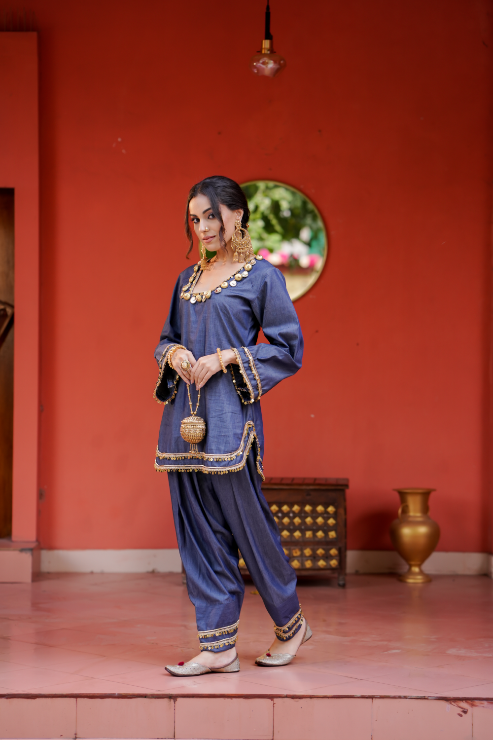 Two-piece kurta salwar set Comfort fit Short kurta with embellished front with intricate embroidery and...
