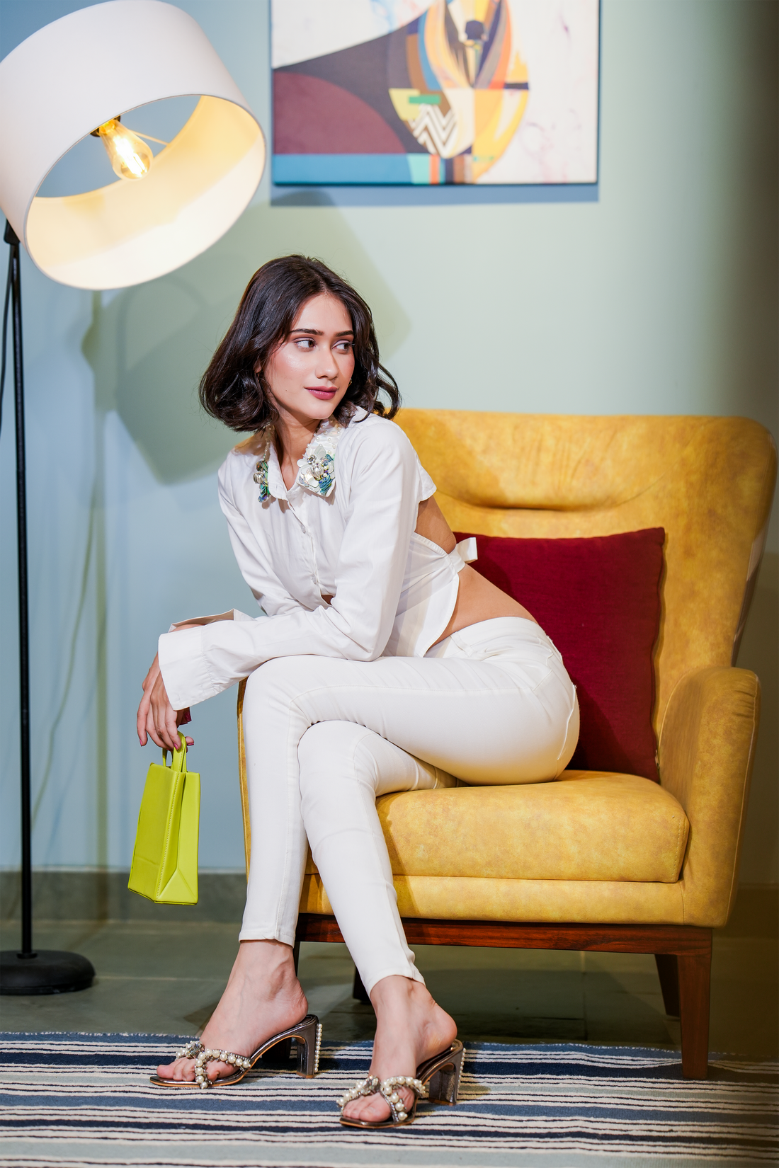 Adding grace and charm to your wardrobe. Playfull frills perfect for your coffee dates.• Comfort/...