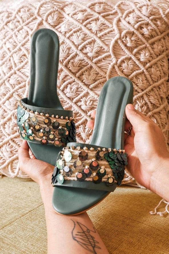 Accentuated with a big pearl and sequin in metallic, laid on a jacquard base, this...