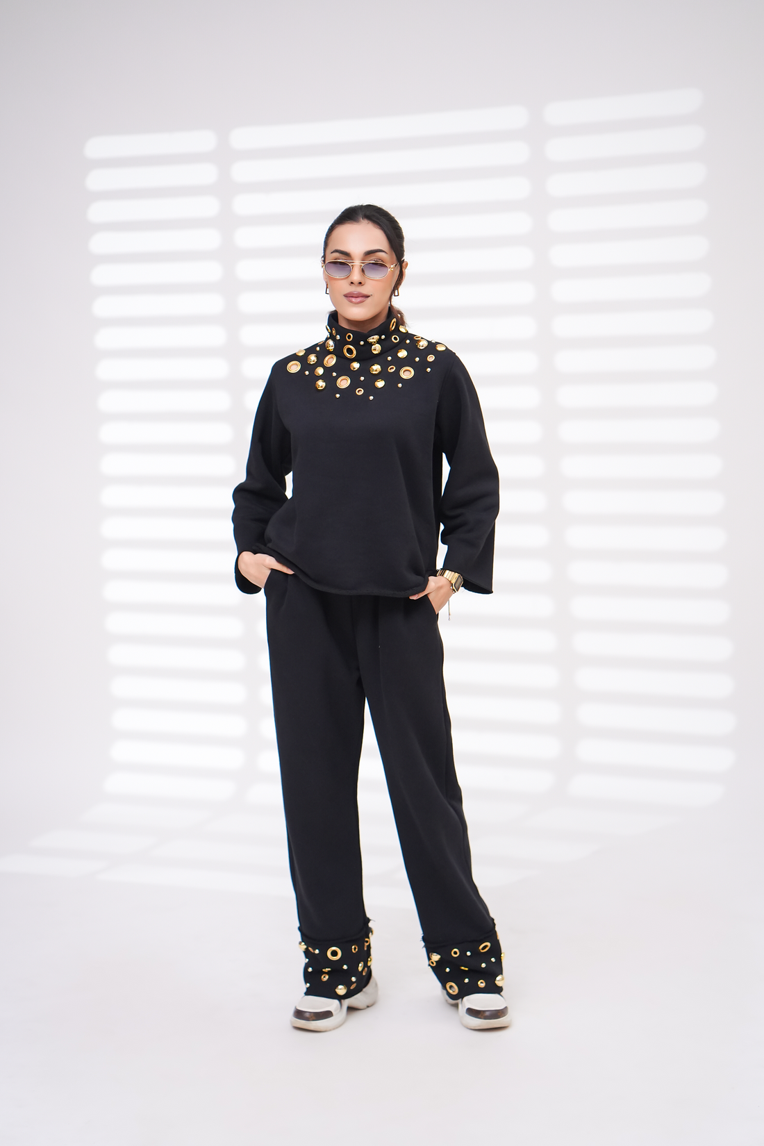 Relaxed fit. Embellished Sweatshirt with back zip closure Fabric: Fleece: 100% Cotton fleece Color: Black...
