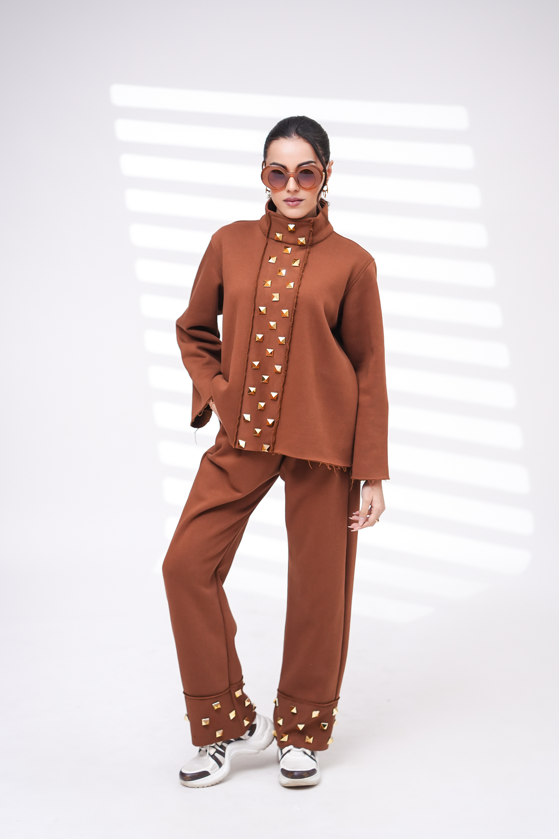 Relaxed fit. Embellished Sweatshirt with back zip closure Fabric: Fleece: 100% Cotton fleece Color: Mocha...