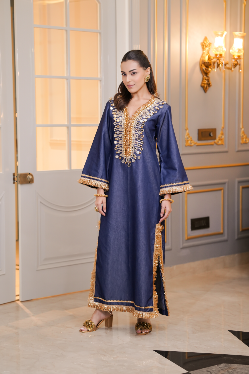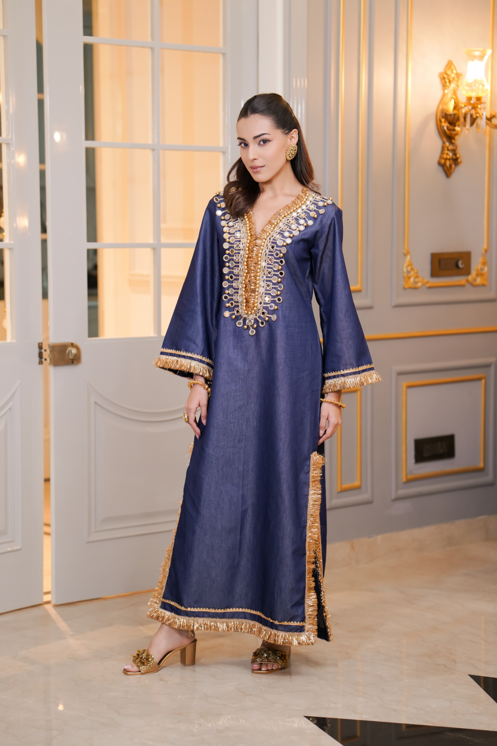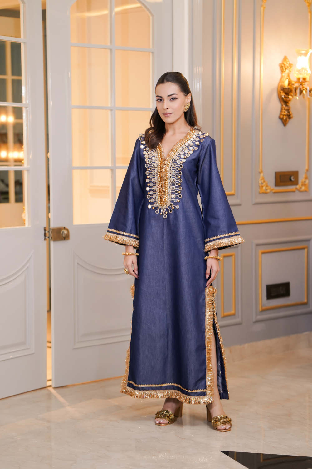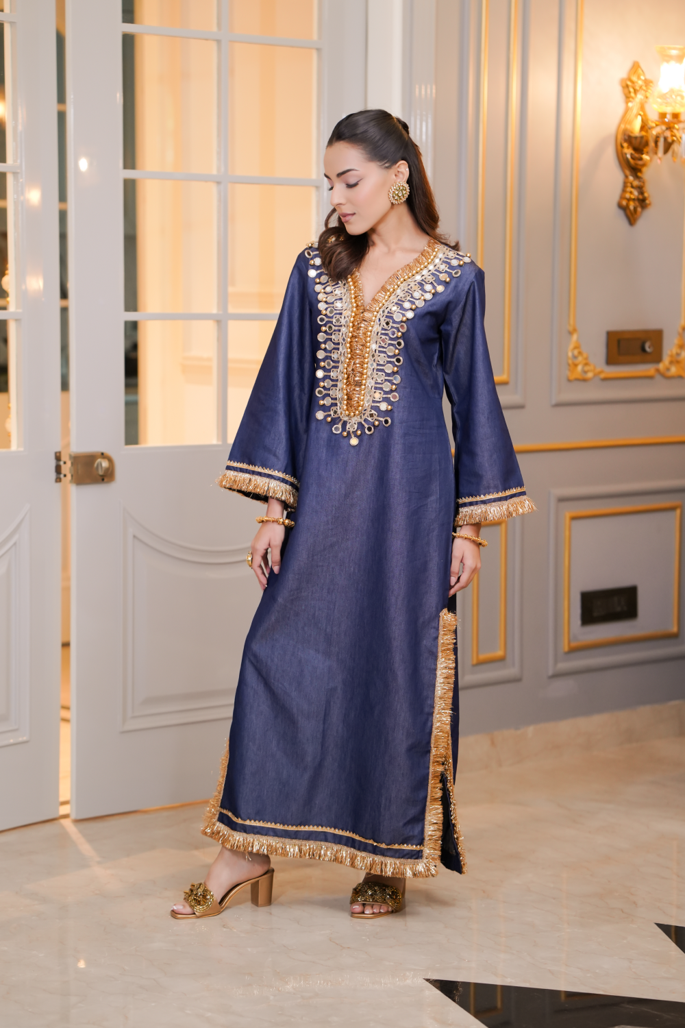 - One-piece Kaftan dress with embellished side slit