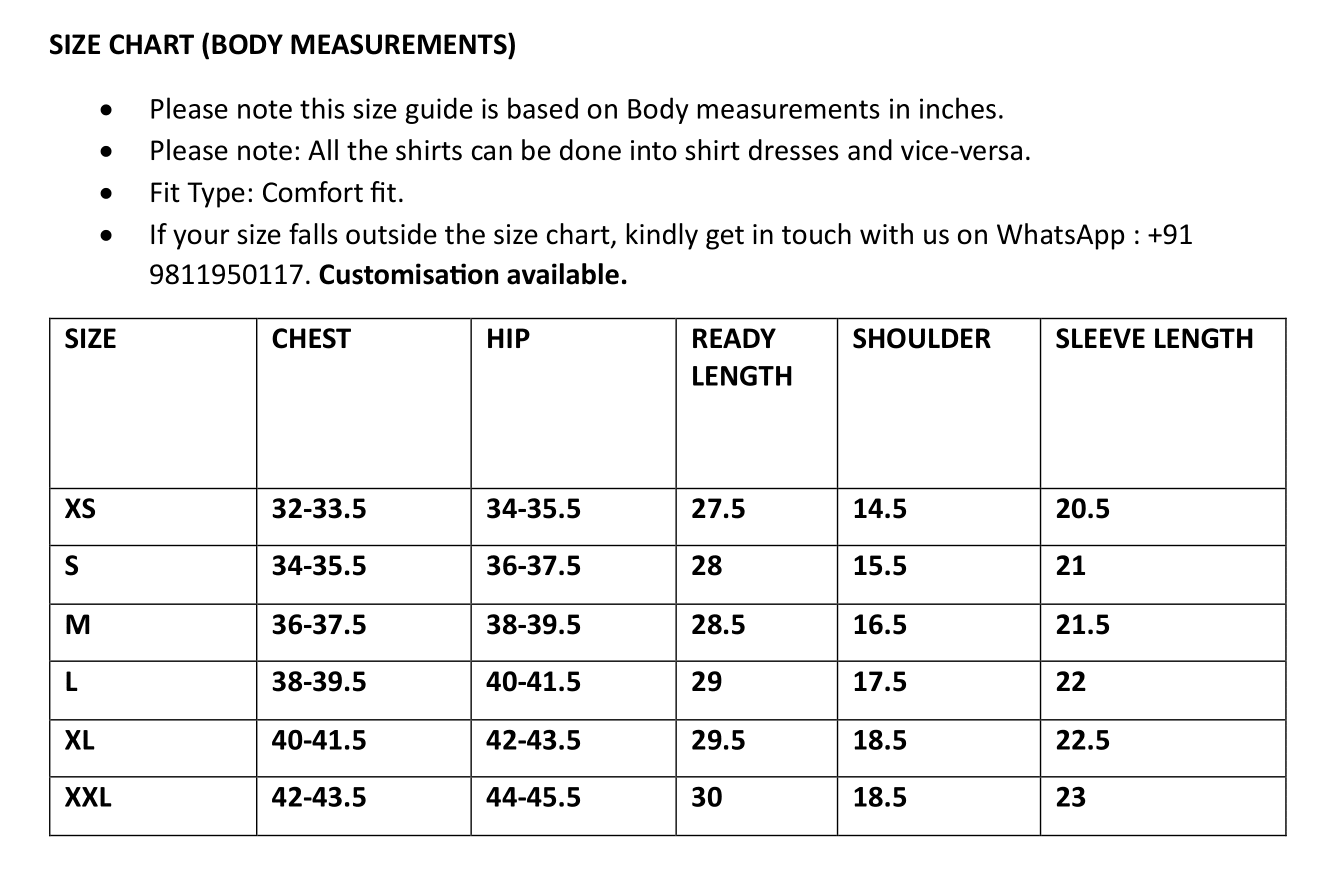 Can't find your size or looking for customisation? Call/WhatsApp us on: +91 98119 50117