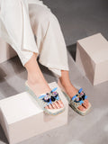 Being densely embellished, we recommend you store your pair in a box with stuffing under the embellished band to retain the shape.