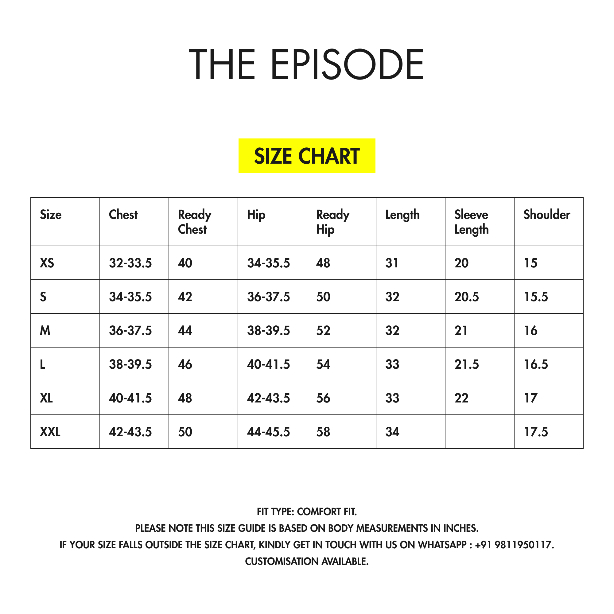 Can't find your size or looking for customisation? Call/WhatsApp us on: +91 98119 50117