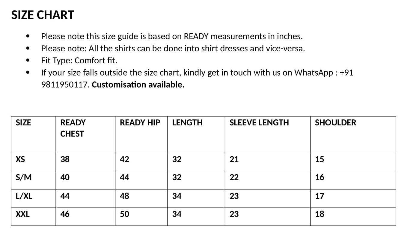 Can't find your size or looking for customisation? Call/WhatsApp us on: +91 98119 50117