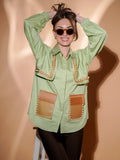 Dramatically playful, not your usual shirt. Perfect timeless transition from dusk till dawn.