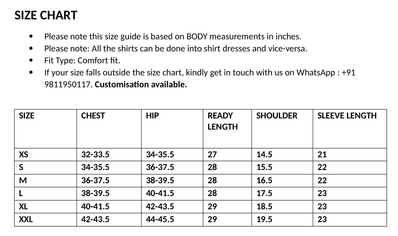Can't find your size or looking for customisation? Call/WhatsApp us on: +91 98119 50117