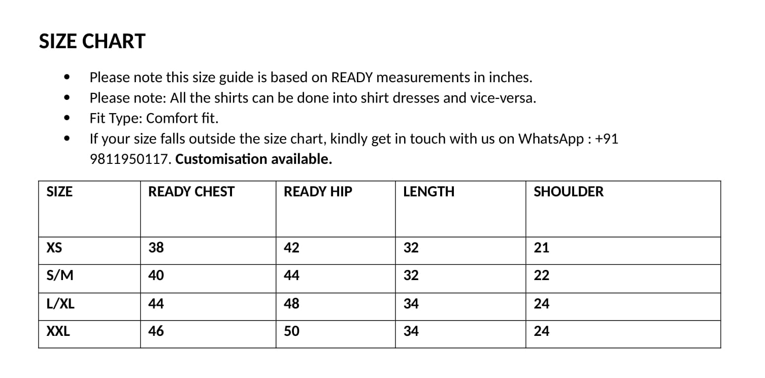 Can't find your size or looking for customization? Call/WhatsApp us on: +91 98119 50117